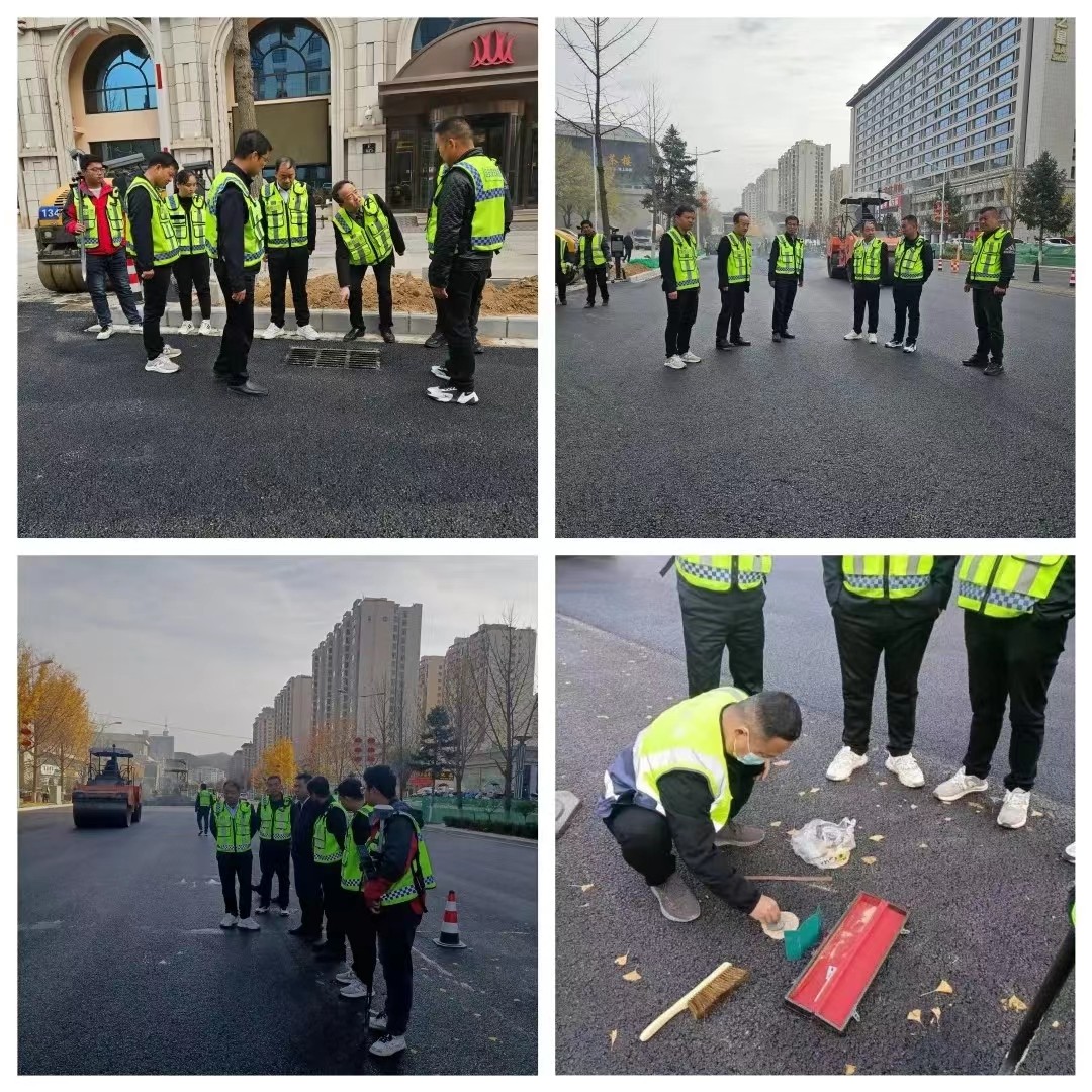 为进一步加强道路施工安全生产管理工作,提高施工人员的安全意识,筑牢安全防线,营造良好的安全施工现场,确保道路施工路段安全畅通、有序进行。11月3日,集团公司董事长苏东东,副总经理刘瑞君,新悦公司总经理田庆龙、副书记何宏林一行对枣园路维修改造工程项目施工现场进行质量安全检查工作。